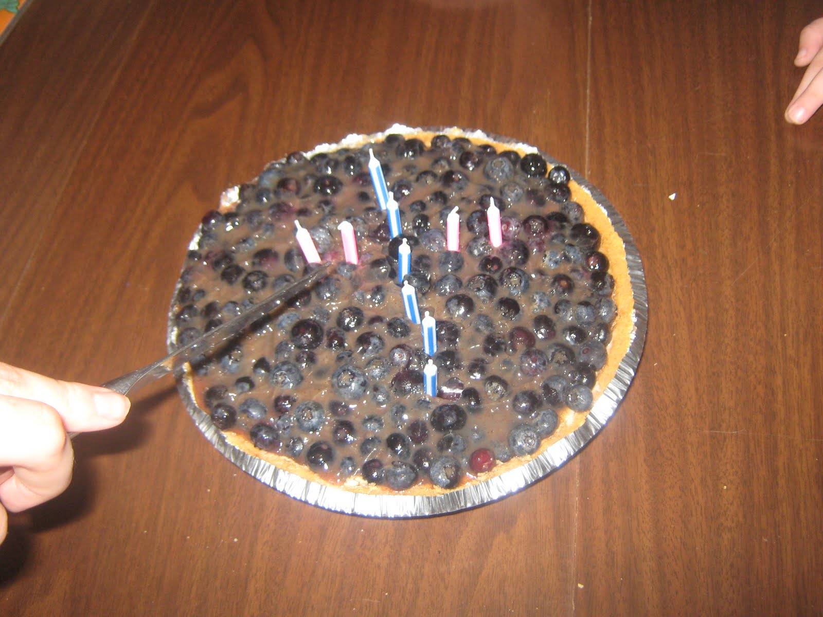 going back as far as September!! Here's a blueberry cheesecake for the nativity of the Blessed Virgin...see how the sauce is kinda brown looking? There was cinnamon in it. But it was good! We set 10 candles in it and lit one at a time as we said a decade of the rosary. Then the kids sang happy birthday and blew them all out.