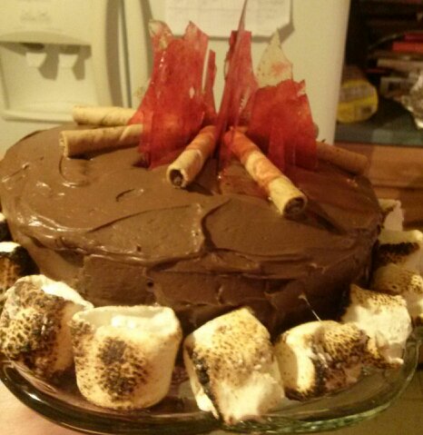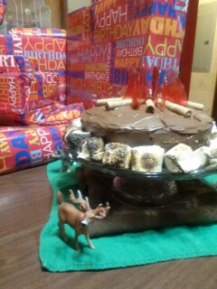 Henry is super affectionate and often still climbs into my lap to snuggle and asking to "play with you hay-uh (hair)". He still loves vehicles of all kinds. He wanted a "camping birthday" today. I'm not sure what exactly he was expecting on a weekday, lol, but here's his {real} picture of his camping cake (h/t Jessica at Shower of Roses). It was a very easy cake to make and came out very well!